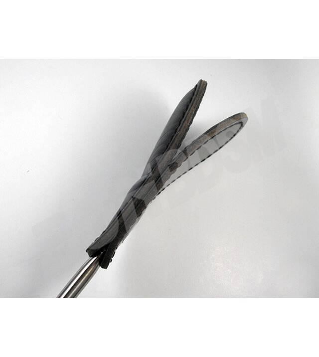 Bonbdsm crop, sometimes called a riding crop or hunting crop, is great entry-level riding crop. The durable construction will ensure that this brings you years of pleasure. The leather Oval head has been designed for two kind of spanking. A soft leather padded side for gentle sensual paddling, and a hard leather side that slaps and spanks misbehavior in the very best way! The polished stainless steel handle has leather tie for wrap around the wrist to support a firm handle grip or for hanging the paddle on your playroom wall.