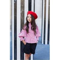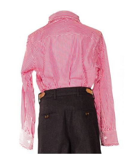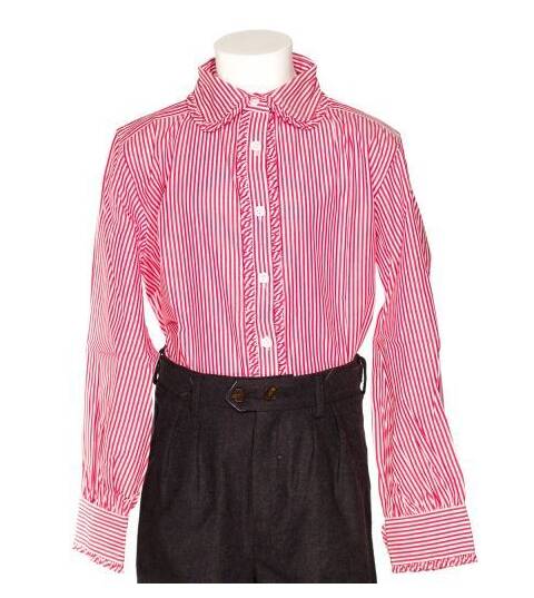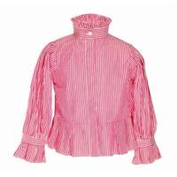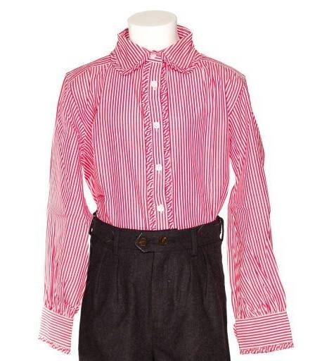 - Red and white striped fabric girls shirt with Claudine Col