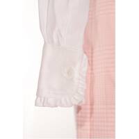 - Lace effect gathers at collar, wrists and along buttonhole