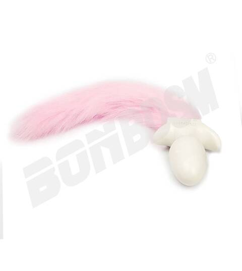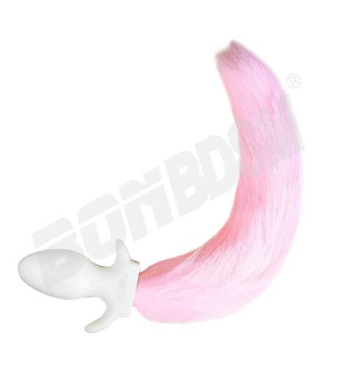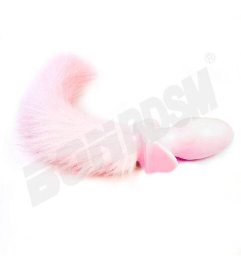 Dog Tail Butt Plug with Baby pink long Faux Fur, Anal Puppy Tail with Fur, Premium Silicone Human Pup Play, BDSM Fetish