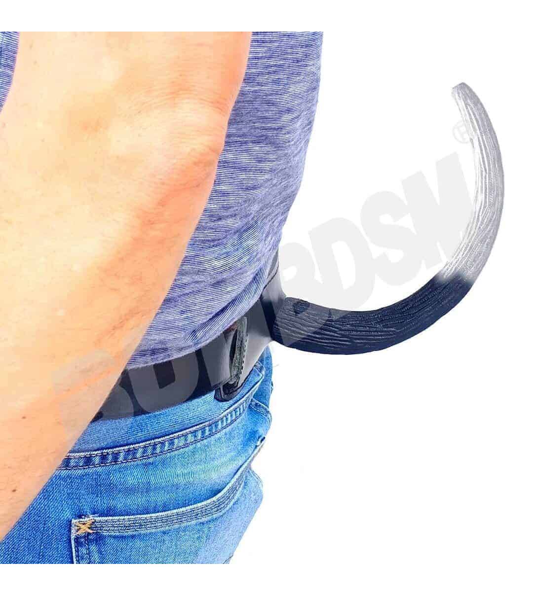 Walk comfortably, worry-free. The tail harness design makes it very stable and gives the confidence to wear it on any occasion. It has a large leather surface that locks to a belt. The leather base is 1/4' inch(6 mm) thick and stitched all around, making it very durable.