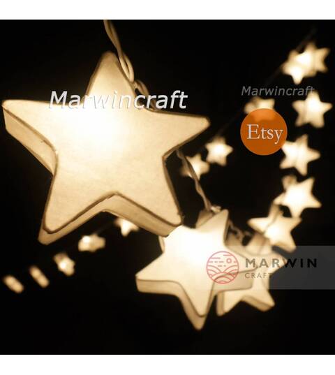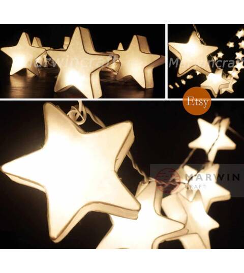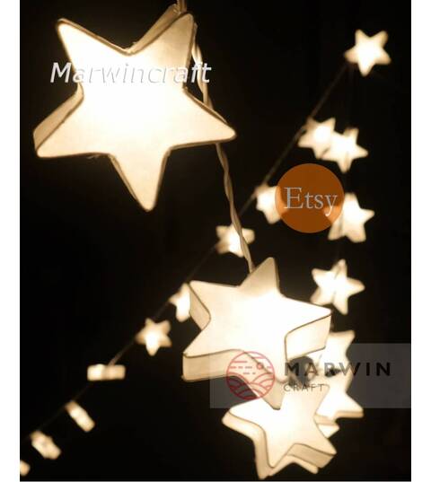 20,35 White String Lights Star Paper Fairy Lights Bedroom Home Decor Living Room Wall Hanging Lights Wedding Decor Dorm Lights Battery Plug