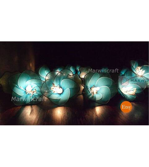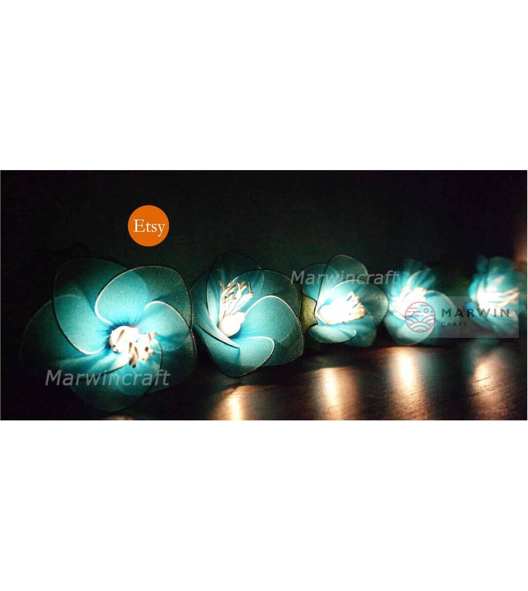 20 Blue String Lights Rain Lilly Flower Fairy Lights Bedroom Home Decor Living Room Wall Hanging Lights Wedding Decor Dorm Battery or Plug