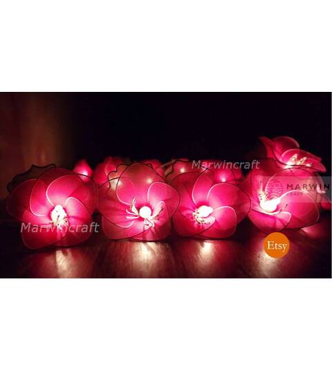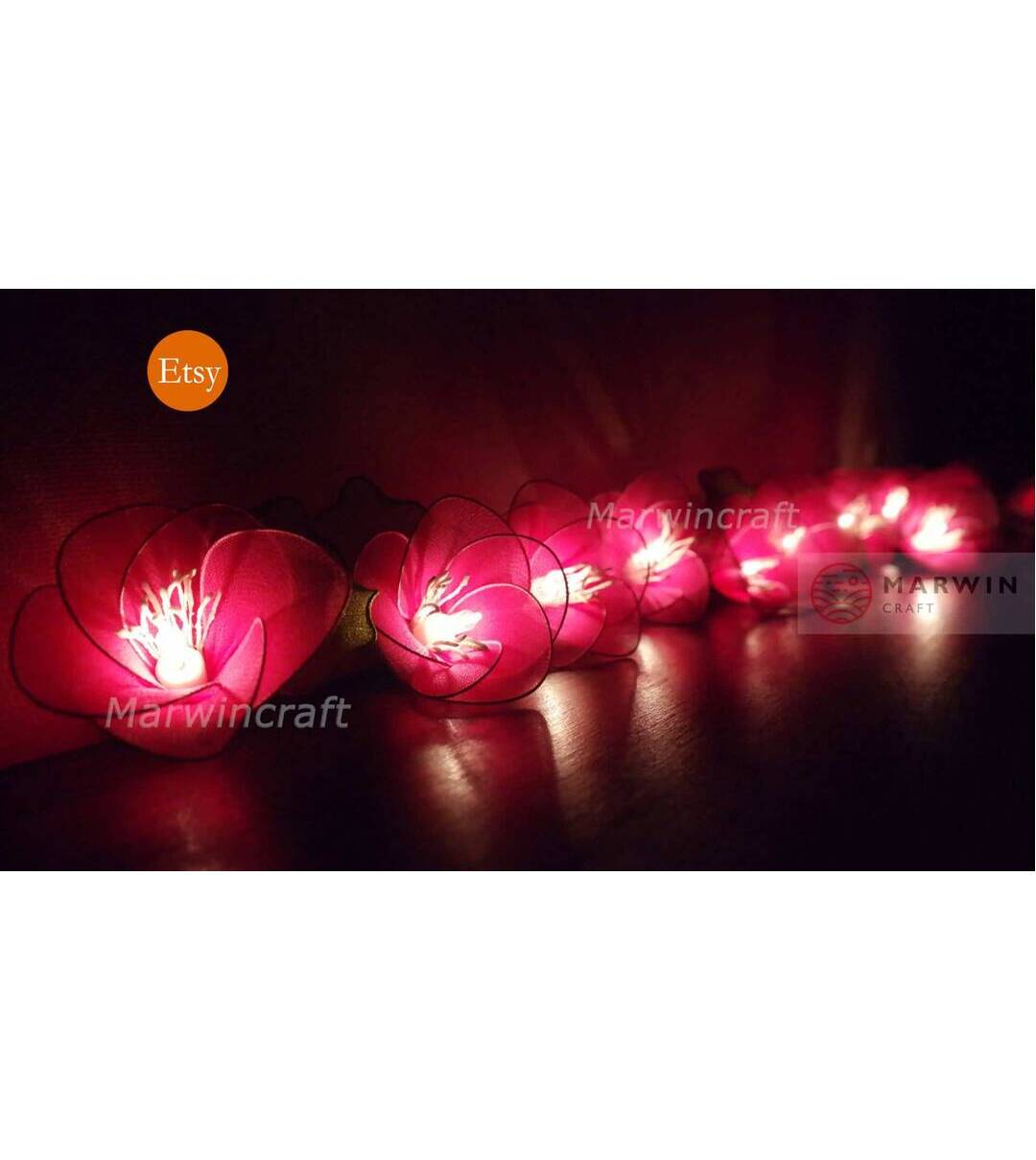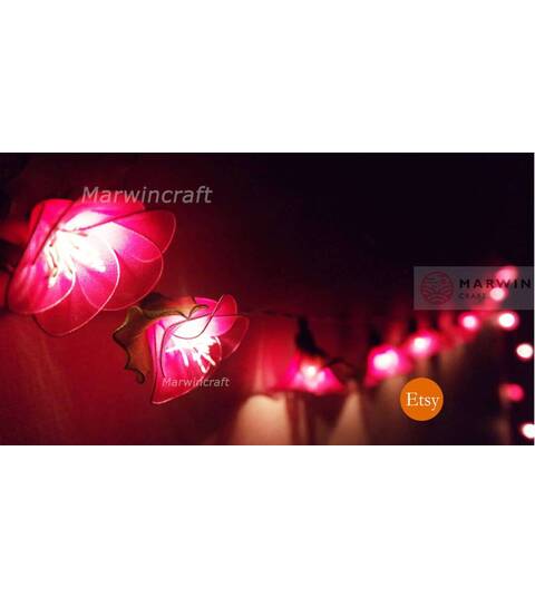 20 Pink String Lights Rain Lilly Flower Fairy Lights Bedroom Home Decor Living Room Wall Hanging Lights Wedding Decor Dorm Battery or Plug