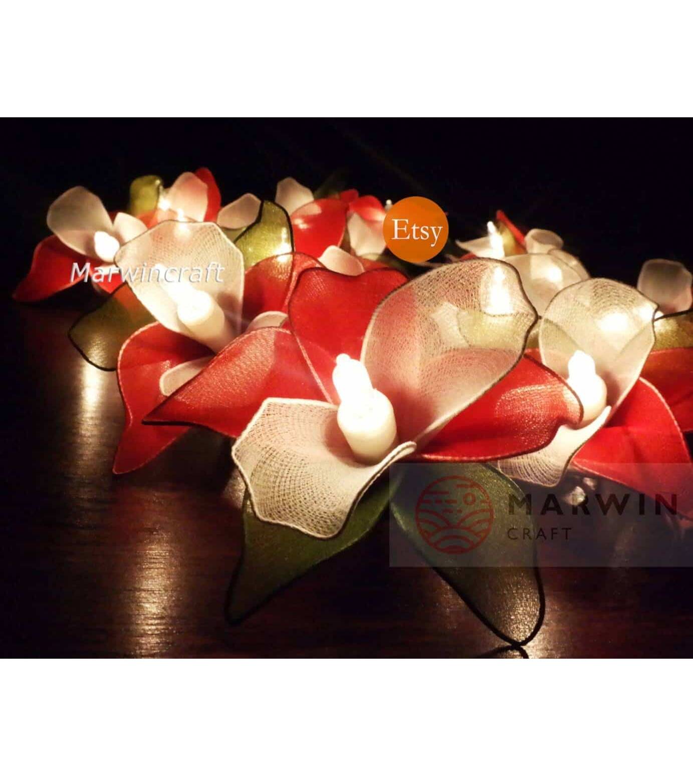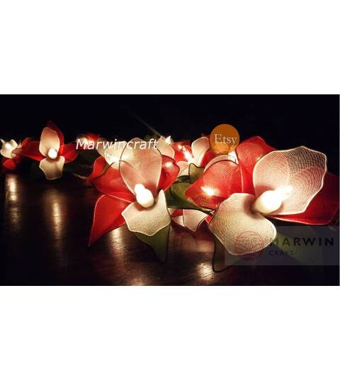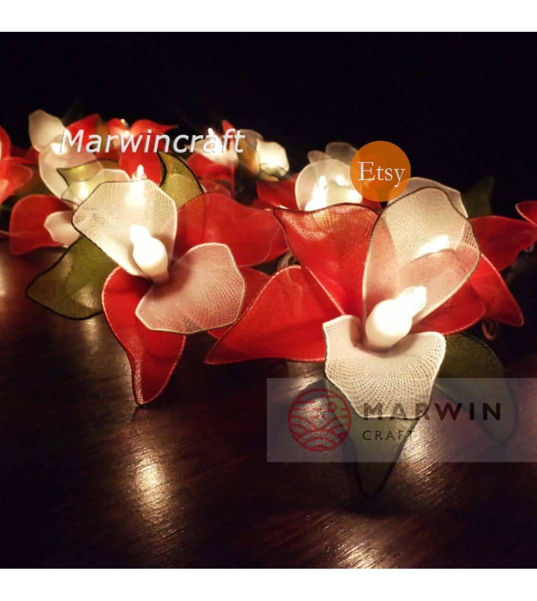 20 Red String Lights Orchid Flower Fairy Lights Bedroom Home Decor Living Room Wall Hanging Lights Wedding Decor Dorm Lights Battery & Plug
