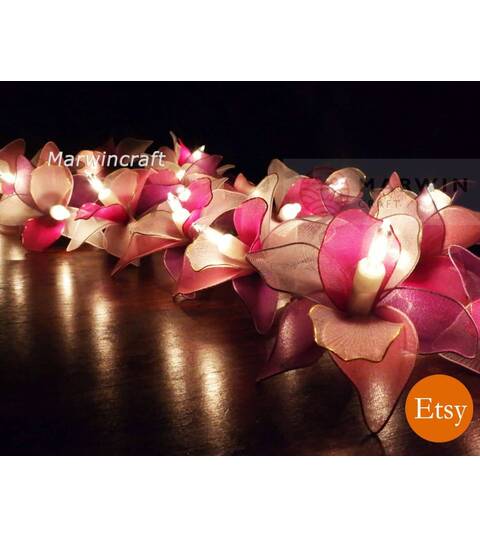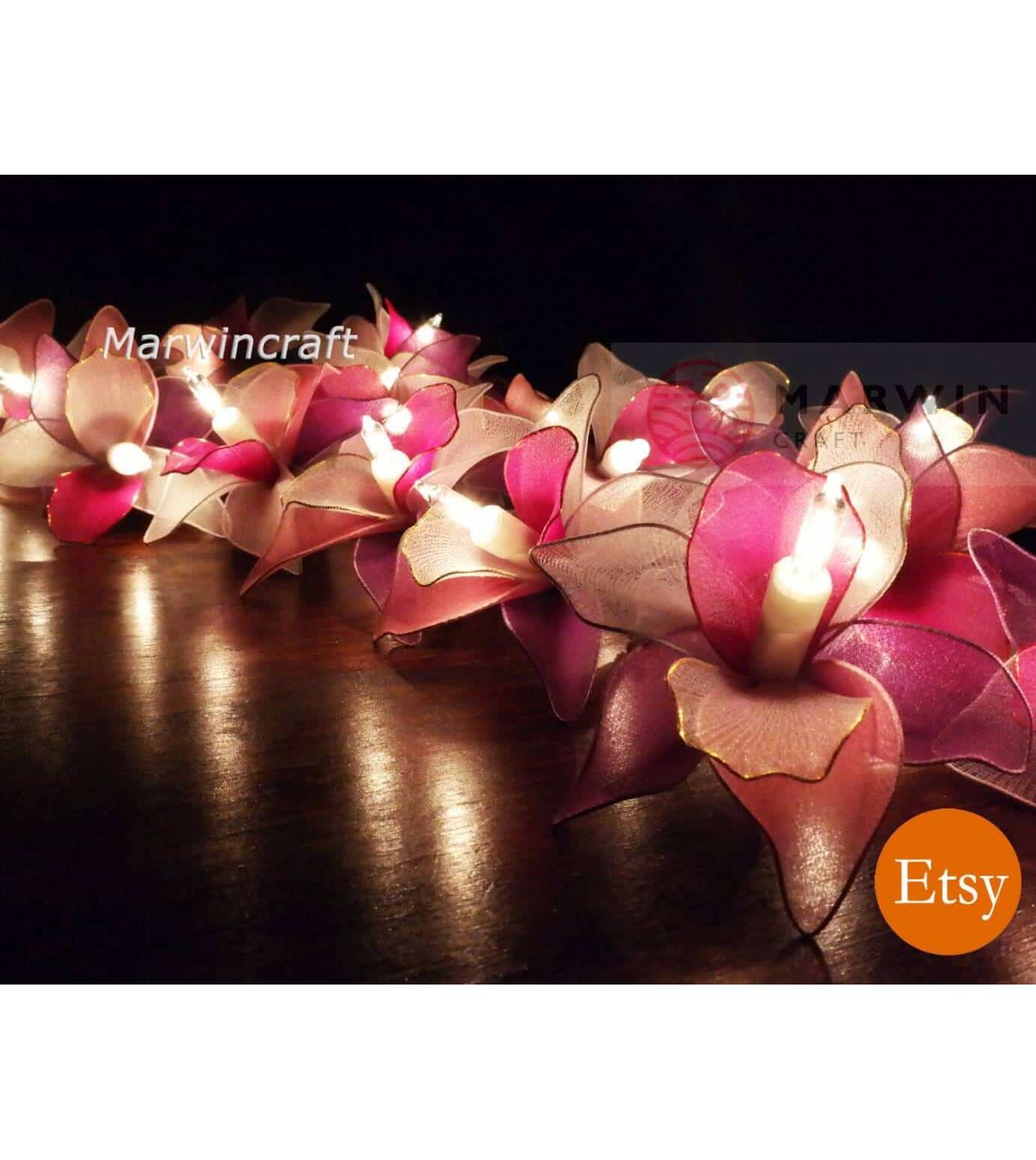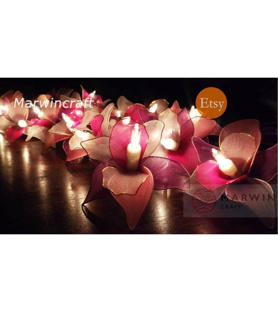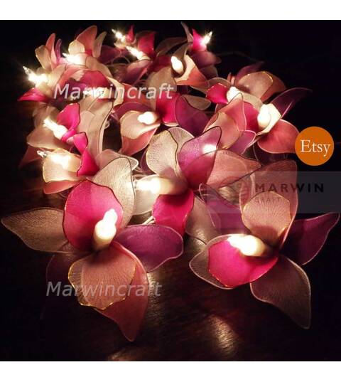 20 White Pink Purple String Lights Orchid Flower Fairy Lights Bedroom Home Decor Living Room Wall Hanging Lights Wedding Decor Battery Plug