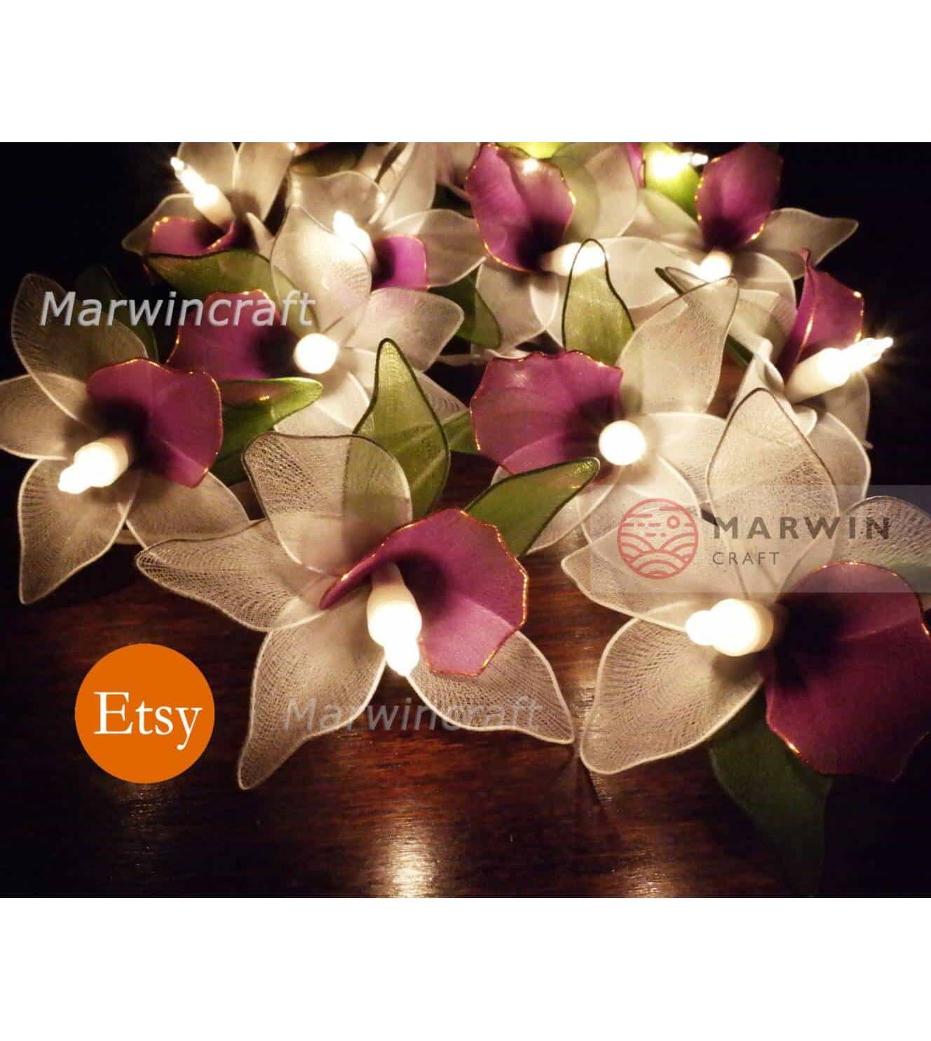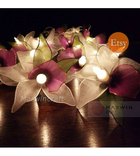 Color : As real Purple-White-Green Orchid Leave