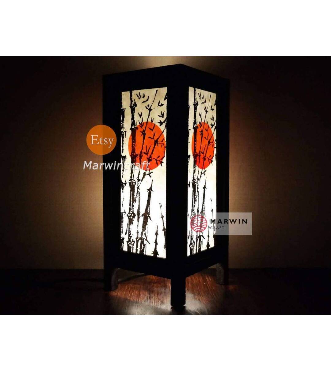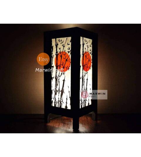 Asian Oriental Bamboo Sunset Japanese Lamp Zen Bedside Lamp Floor Table Lamp Paper Japanese Light Lamp Shades Bedroom Home Decor Livingroom