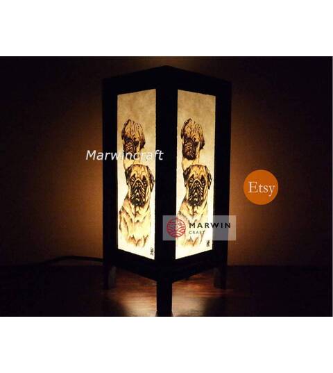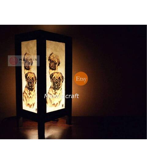Asian Oriental Japanese Pet Pug Dog Lamp Zen Bedside Lamp Floor Table Lamp Paper Japanese Light Lamp Shades Bedroom Home Decor Living Room