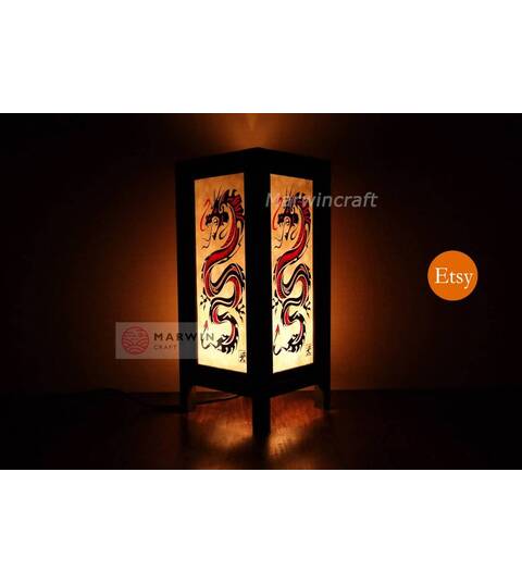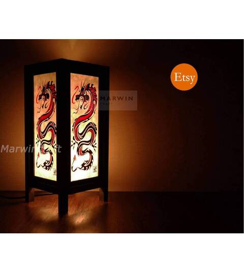 Asian Oriental Red Dragon Japanese Lamp Zen Bedside Lamp Floor Table Lamp Paper Japanese Light Lamp Shades Bedroom Home Decor Living Room
