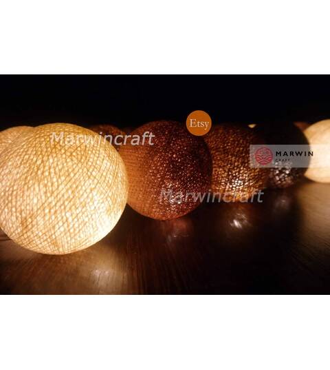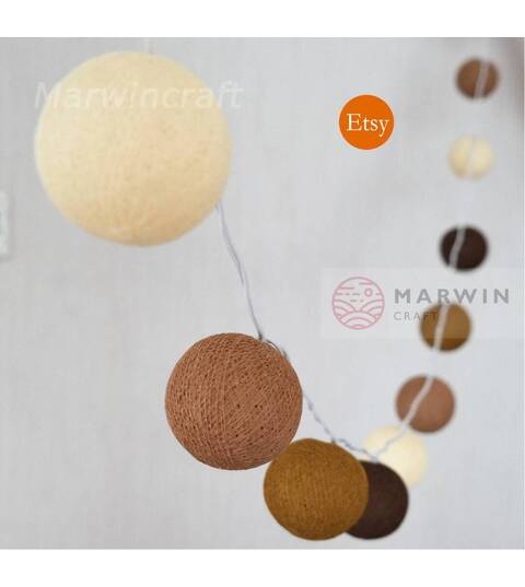 Beige Brown String Lights Cotton Balls Fairy Lights Bedroom Home Decor Living Room Wall Hanging Lights Decor Dorm Lights 20,35 Battery Plug