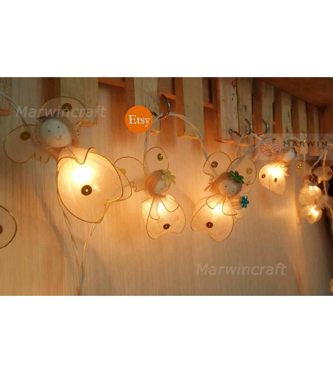 String Lights White Angel Tooth Fairy Lights Bedroom Home Decor Living Room Wall Hanging Lights Festival Decor Dorm Lights Battery & Plug