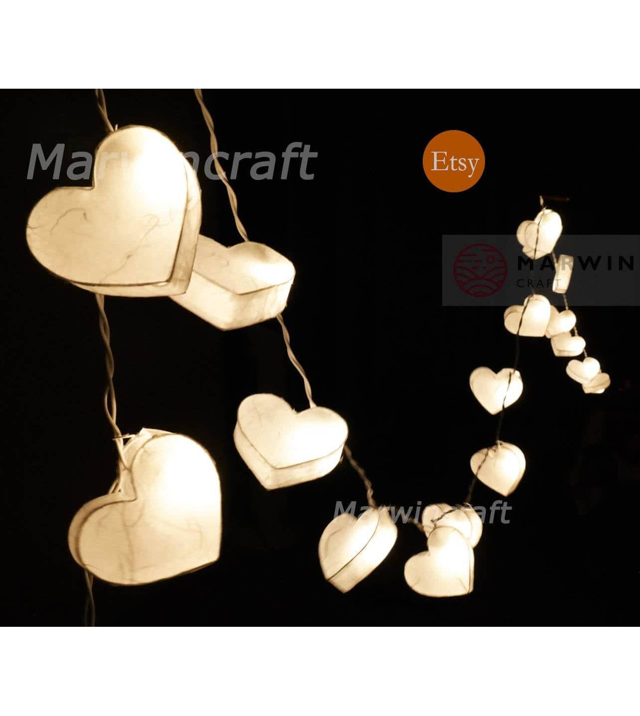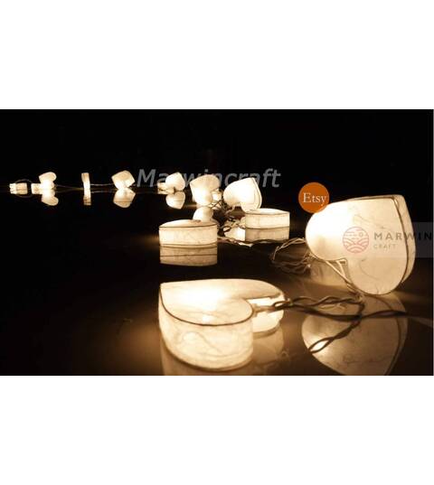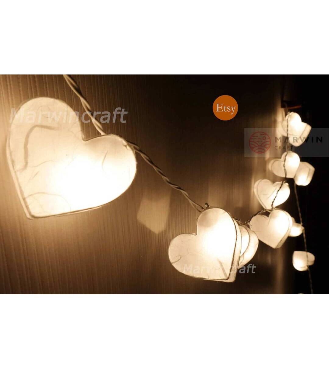 White Mulburry Paper String Lights Heart Fairy Lights Bedroom Home Decor Living Room Wall Hanging Lights Decor Dorm Lights Battery & Plug