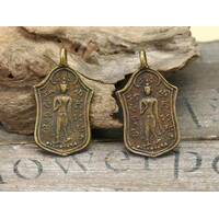 Brass Rian Phra Phut Lila Thai Amulet old beautiful, Success amulet talisman Pendant The Power Nice Magic Holy Set 2.Pcs