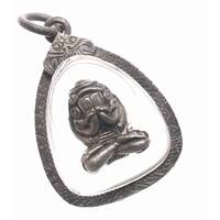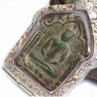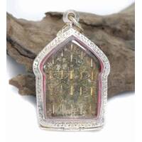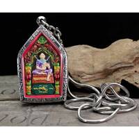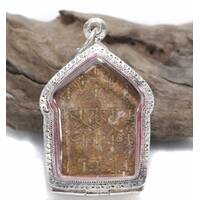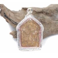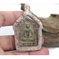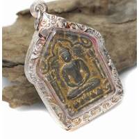 Old Mini Phra Sang Kat Chai Rare Thai Amulet Pendan Copper Material Silver Case Protect Life The Power Nice Magic Holy