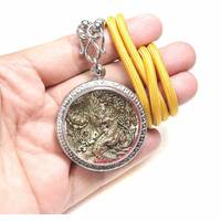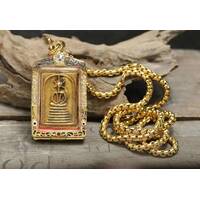 Phra Kring Thai Buddha Statues Sacred Brass Gold Plated Pendant The Power Nice Magic Holy Coconut Shell Stainless Handmade 27 inches 5.mm