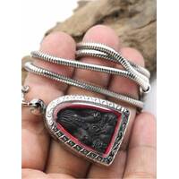 Gemstone, pendant serpent (Thai Naga Eye Magic Pendant) Solid sterling silver casing ,Handcrafted Jewelry ,Thailand Hademade