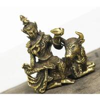 Phra Siwa Brass Hindu God sculpture Sitting cow Figurine success Blessed amulet Power Nice Magic Holy Free Shipping