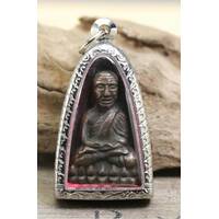 Phra PidTa YanYung Silver LuangPu Thim WatLaHanRai Rayong BE.1974 Rare Thai Amulet Pendant Talisman The Holy Sacred Legend Monk Protect Life