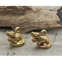 Mini Mushika Statue Mouse Hindu Statue figurine Old Statue Protect Life good business Antique Rare Pendants The Power Nice Holy 2.Pcs