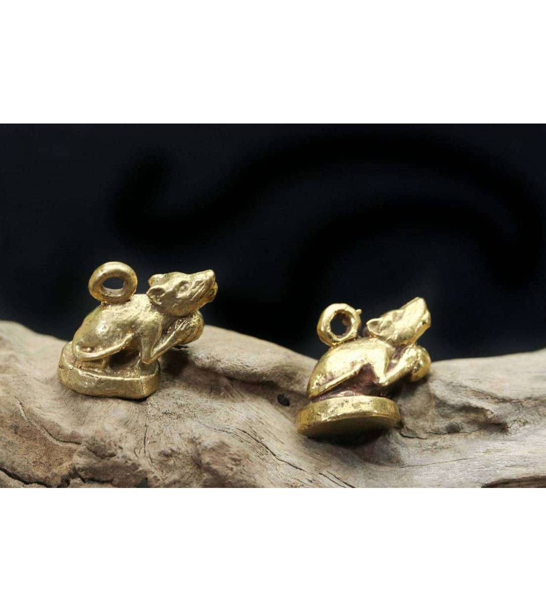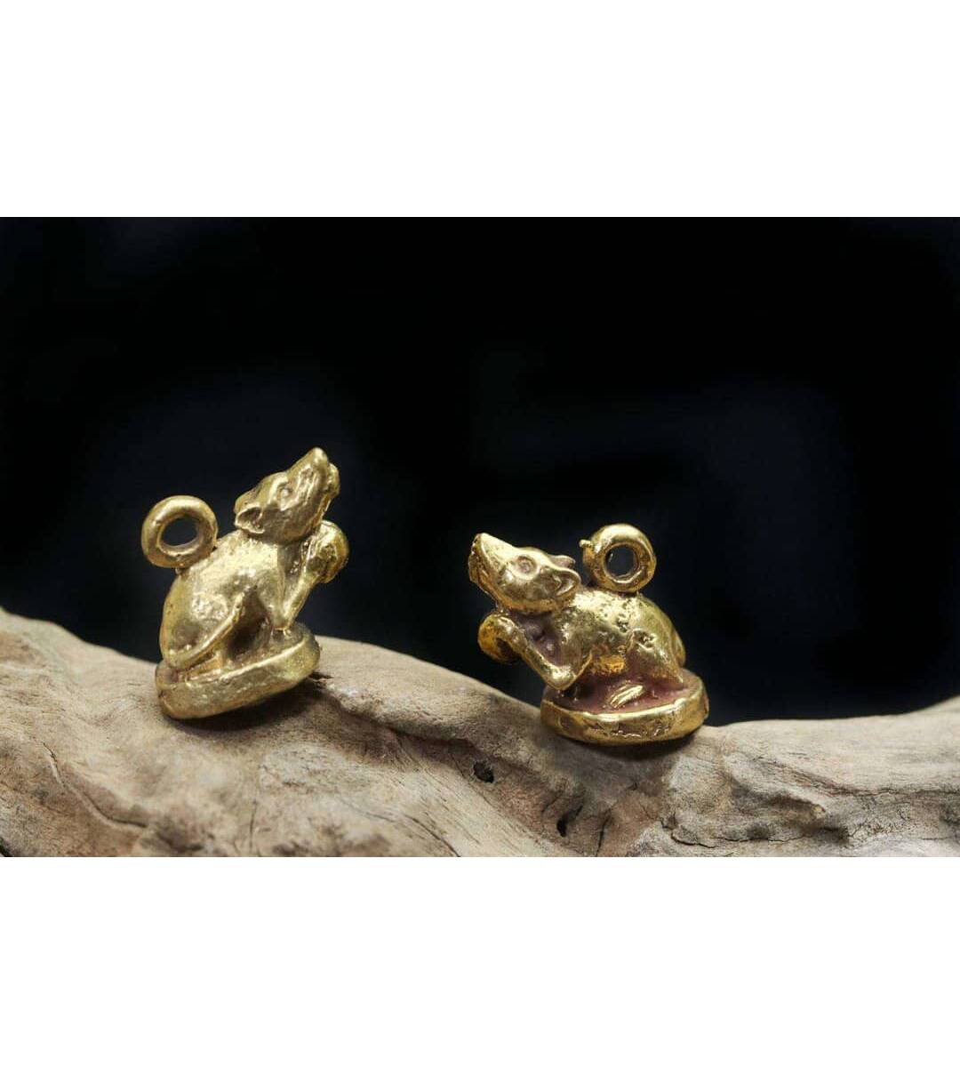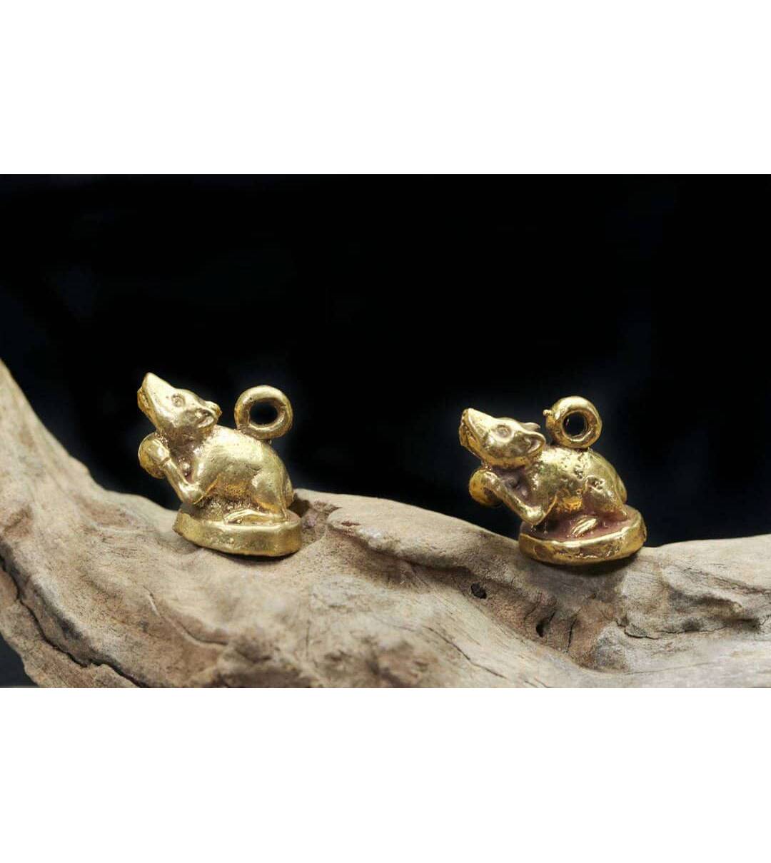 mini Mushika statue Mouse Hindu Statue figurine Old Statue Protect Life good business Antique Rare Pendants The Power Nice Holy 2.Pcs Amulet name :...