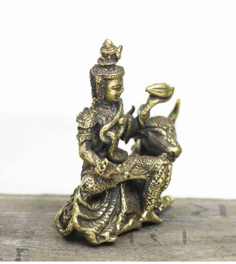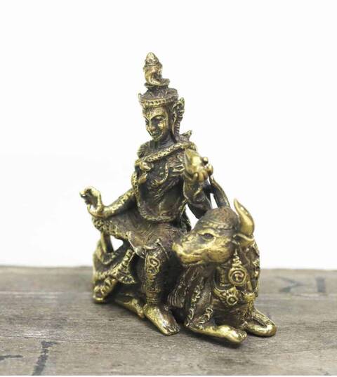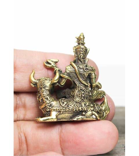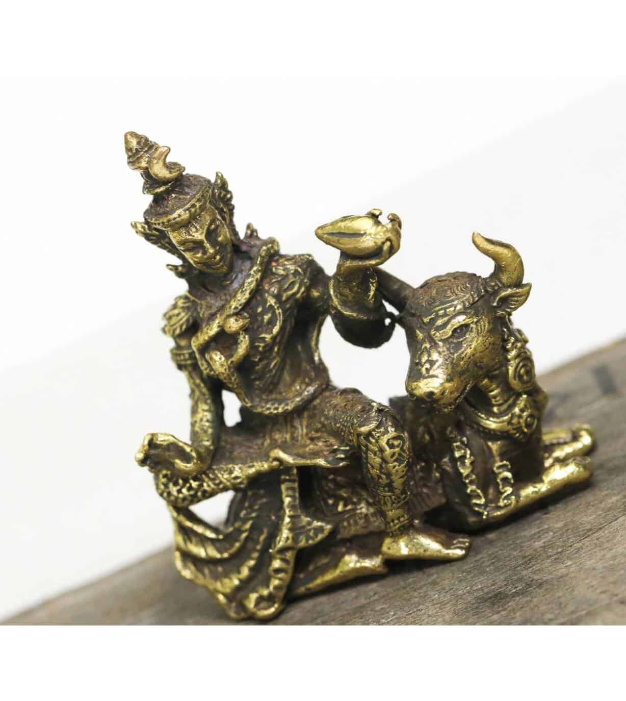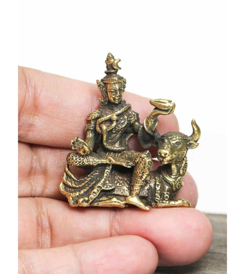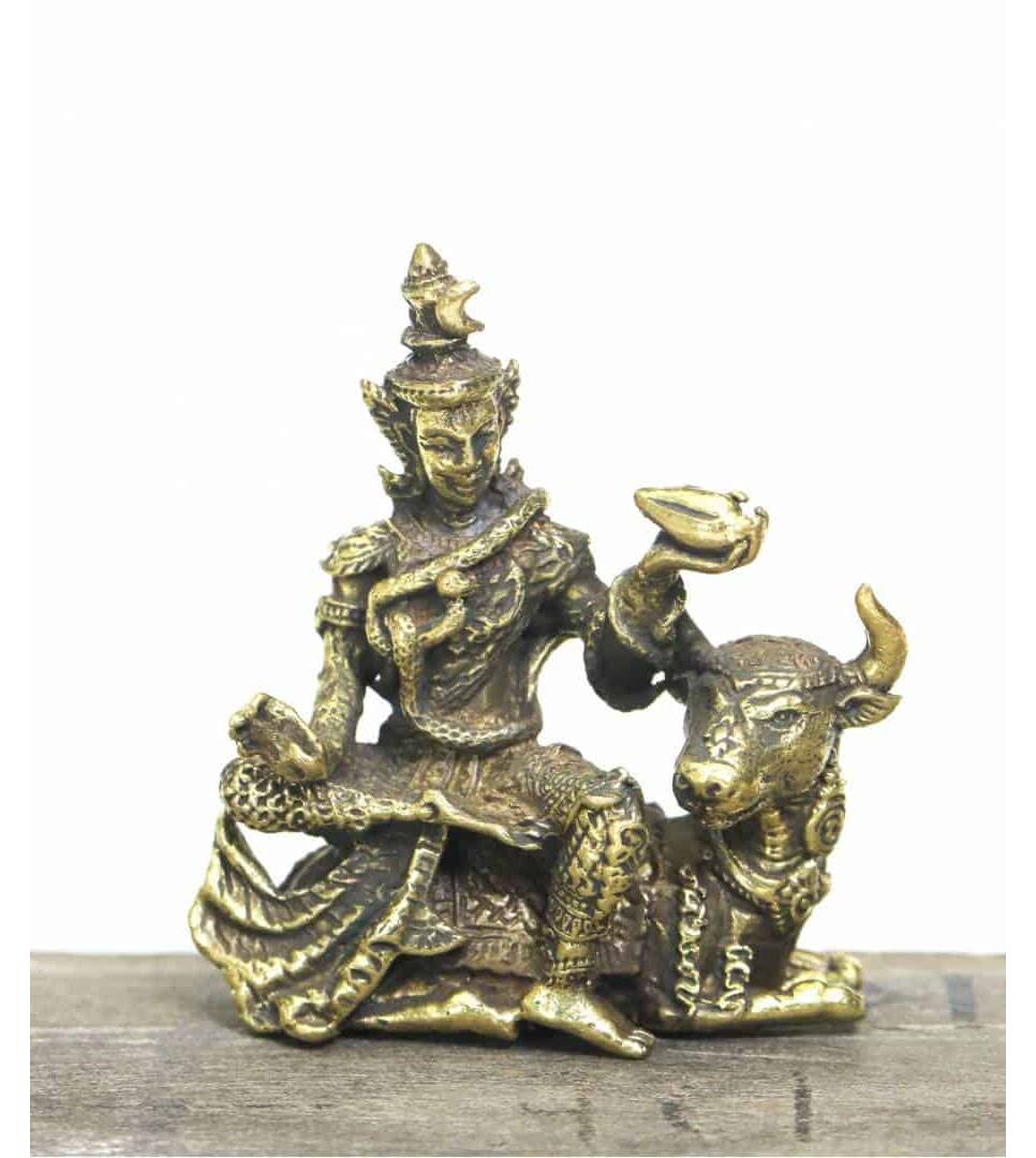 Phra Siwa Brass Hindu God sculpture Sitting cow Figurine success Blessed amulet Power Nice Magic Holy Free Shipping
