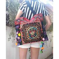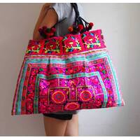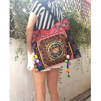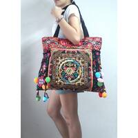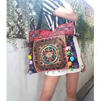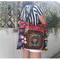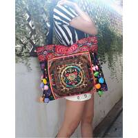 Ethnic Hobo Boho Asian Embroidered Thai Tote Shoulder Hmong Messenger HandBag pom pom