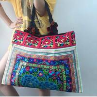 Ethnic Hobo Boho Asian Embroidered Thai Tote Shoulder Hmong Messenger HandBag pom pom