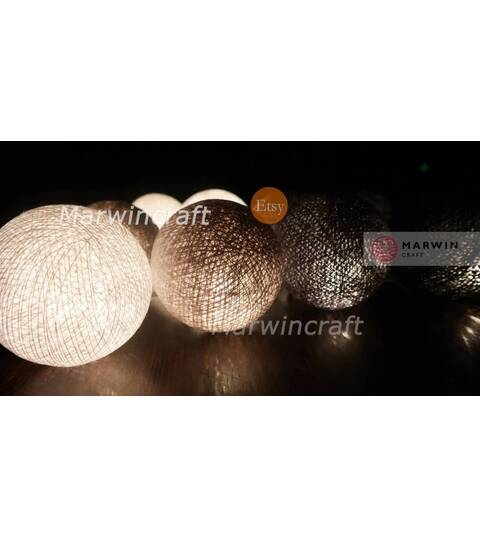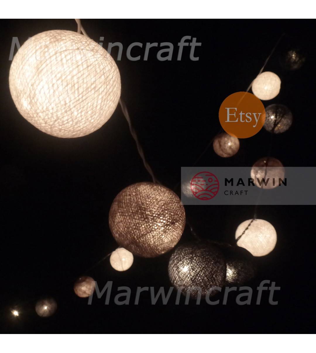 Grey String Lights Cotton Balls Fairy Lights Bedroom Home Decor Living Room Wall Hanging Lights Backdrop Decor Dorm Lights Battery & Plug