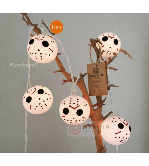 Horror decor Jason Mask String Lights Halloween Fairy Lights Bedroom Home Decor Living Room Wall Hanging Lights Wedding Decor Dorm Lights