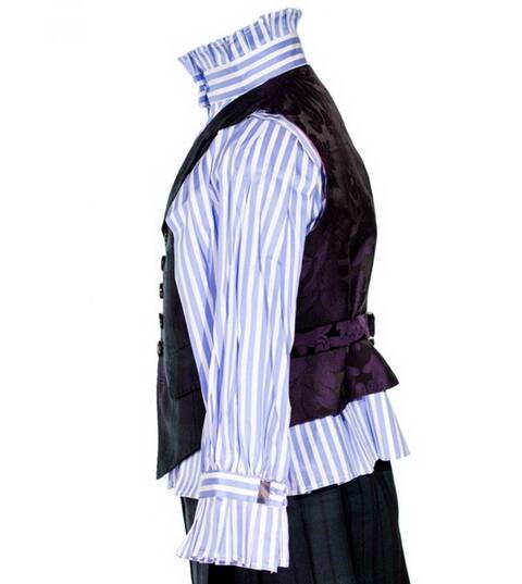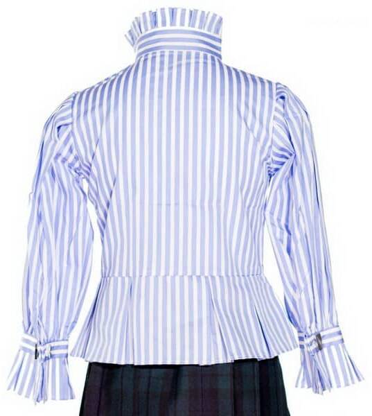 - Fronces au col, aux manches et aux poignets pour donner un effet dentelle. Le bas du chemisier est également froissé ce qui donne un effet jupon