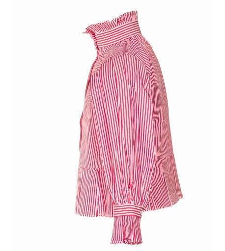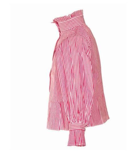 - Fronces au col, aux manches et aux poignets pour donner un effet dentelle. Le bas du chemisier est également froissé ce qui donne un effet jupon