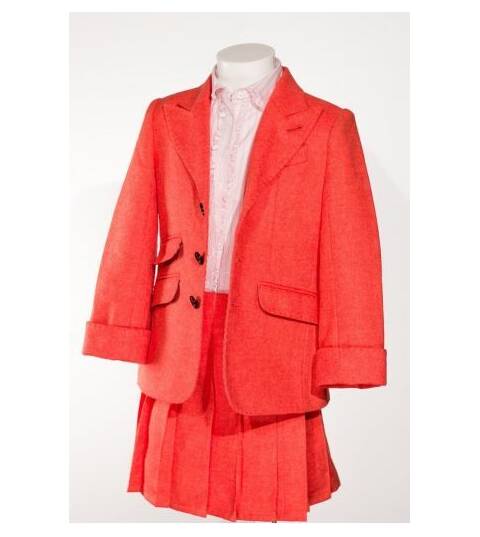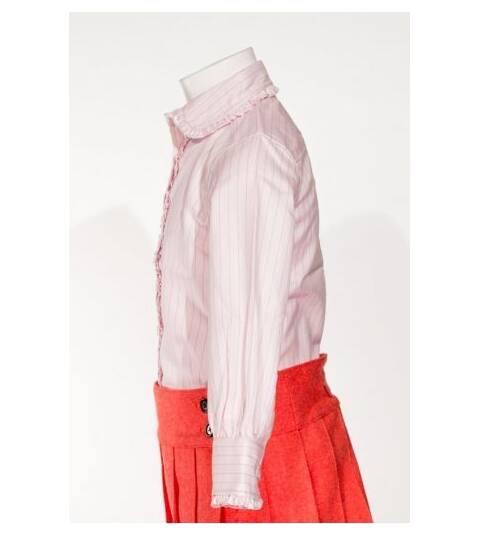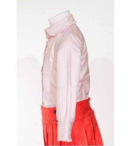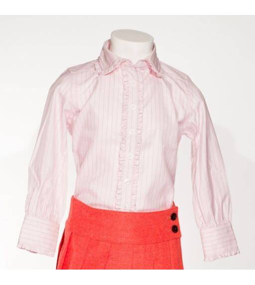 - Chemise fille en tissu rayé rose et noir avec Claudine Col