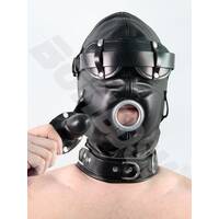 The Loon bdsm mask, locking leather hood with pure silicone gag, black Leather fetish bondage gimp mask hood, Mature