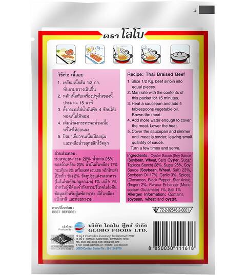 Ingredients: Oyster Sauce (Soy Sauce (Soybean, Wheat, Salt) Oyster, Sugar, Tapioca Starch) 28%, Sugar 25%, Soy Sauce (Soybean, Wheat, Salt) 23%, Soybean Oil 17%, Garlic 3%, Spices (Cinnamon, Black Pepper, Star Anise, Ginger) 2%, Flavour Enhancer (Mono sodium Glutamate) 1%, Salt 1%