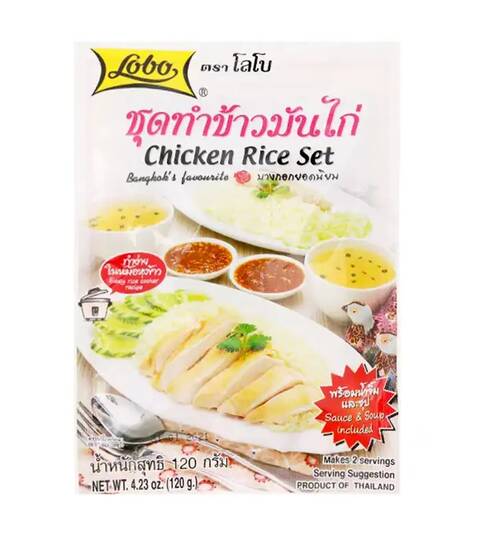 Lobo Chicken Rice Set 120 g. Special recipe that can be made eaily with just one pot and chicken rice set. Experience the authentic taste of Thai style chicken rice with delicious smell from spices. One of the most delicious chicken rice you will ever taste.
