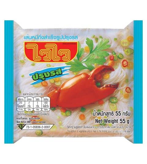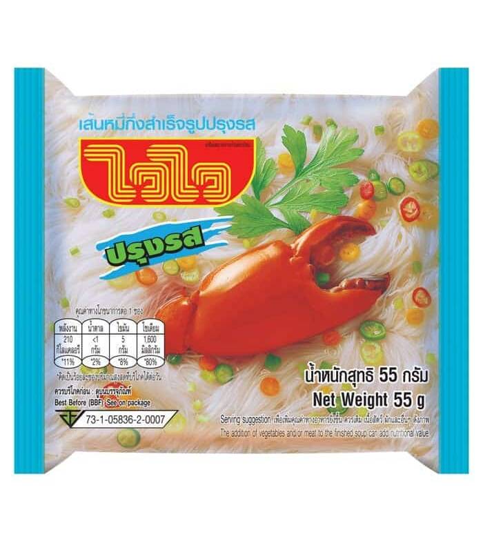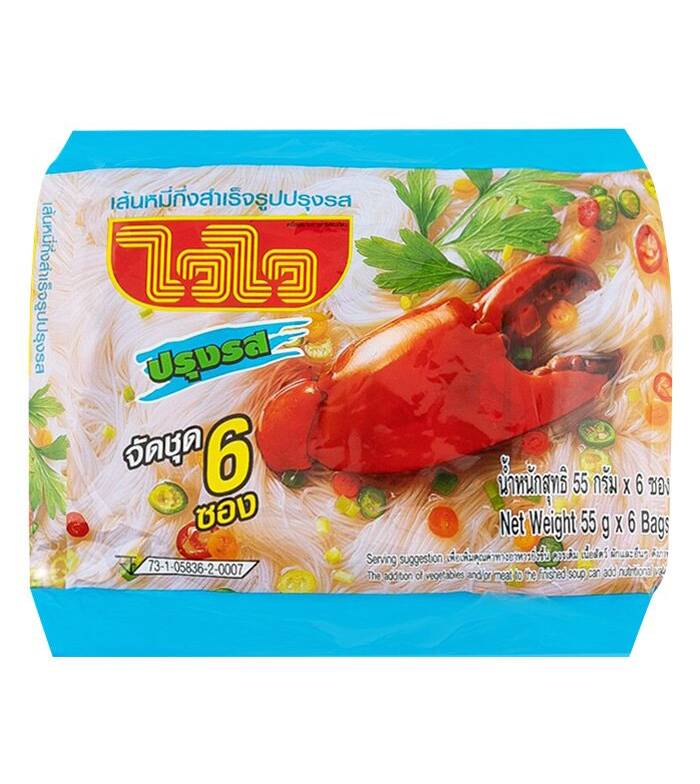 WAI WAI Instant Rice Vermicelli Crab Flavour 55 g. Pack 6 Taste a new flavour of WAI WAI instant noodle with WAI WAI Instant Rice Vermicelli Crab Flavour....