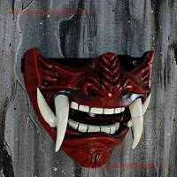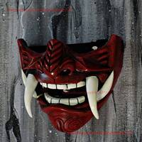 Half Face Airsoft Mask BB Gun Paintball Hannya Kabuki Halloween Costume Cosplay, Japanese Samurai Mempo Noh Evil Demon Oni Ninja Ronin MA133